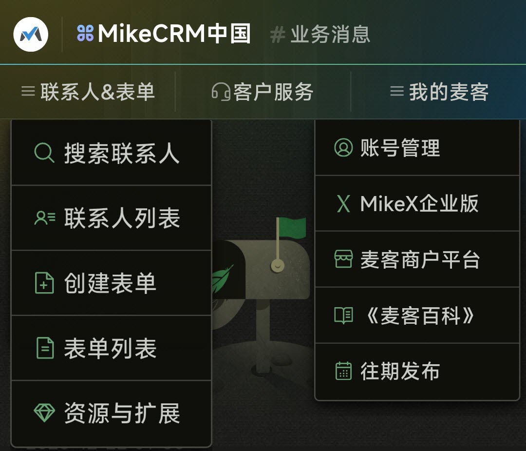 1. 订阅MikeCRM中国消息号及#业务消息 频道